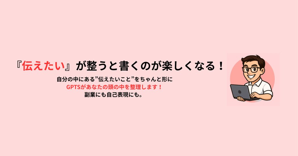 副業にも発信にも使える執筆サポートGPT、開発しました。「伝えたいのに、まとまらない」──そんなもどかしさを、AIの力でほどきます。ChatGPTを使えば、note初心者でもどんなジャンルでもスラスラ書けます!
